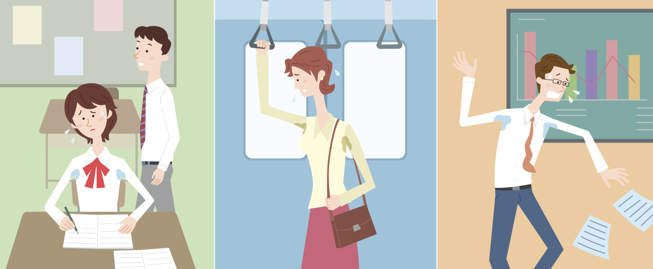 - ワキから汗がツーっと流れ落ちる不快感で勉強や仕事に集中できない