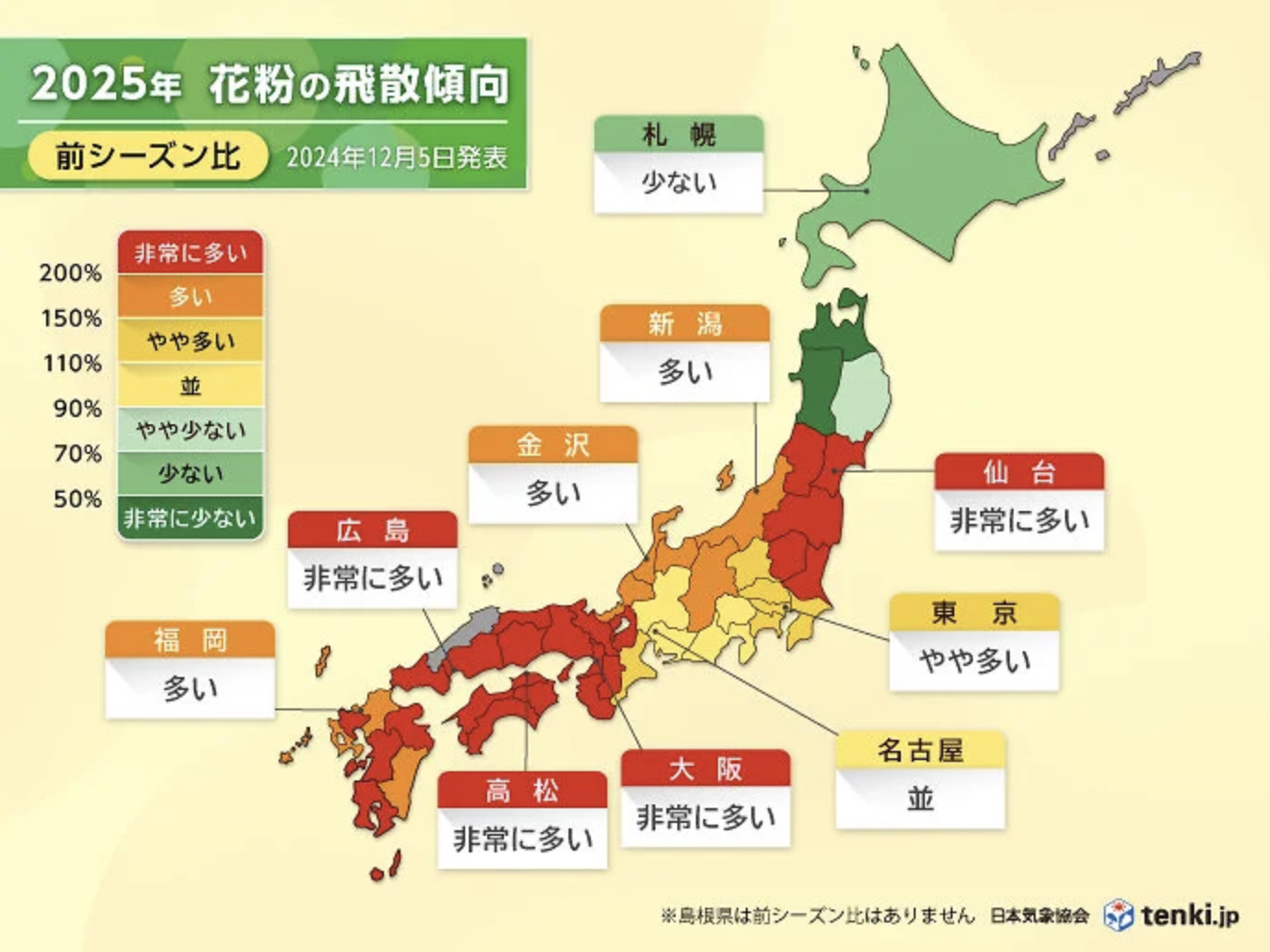 2025年春の花粉飛散量は